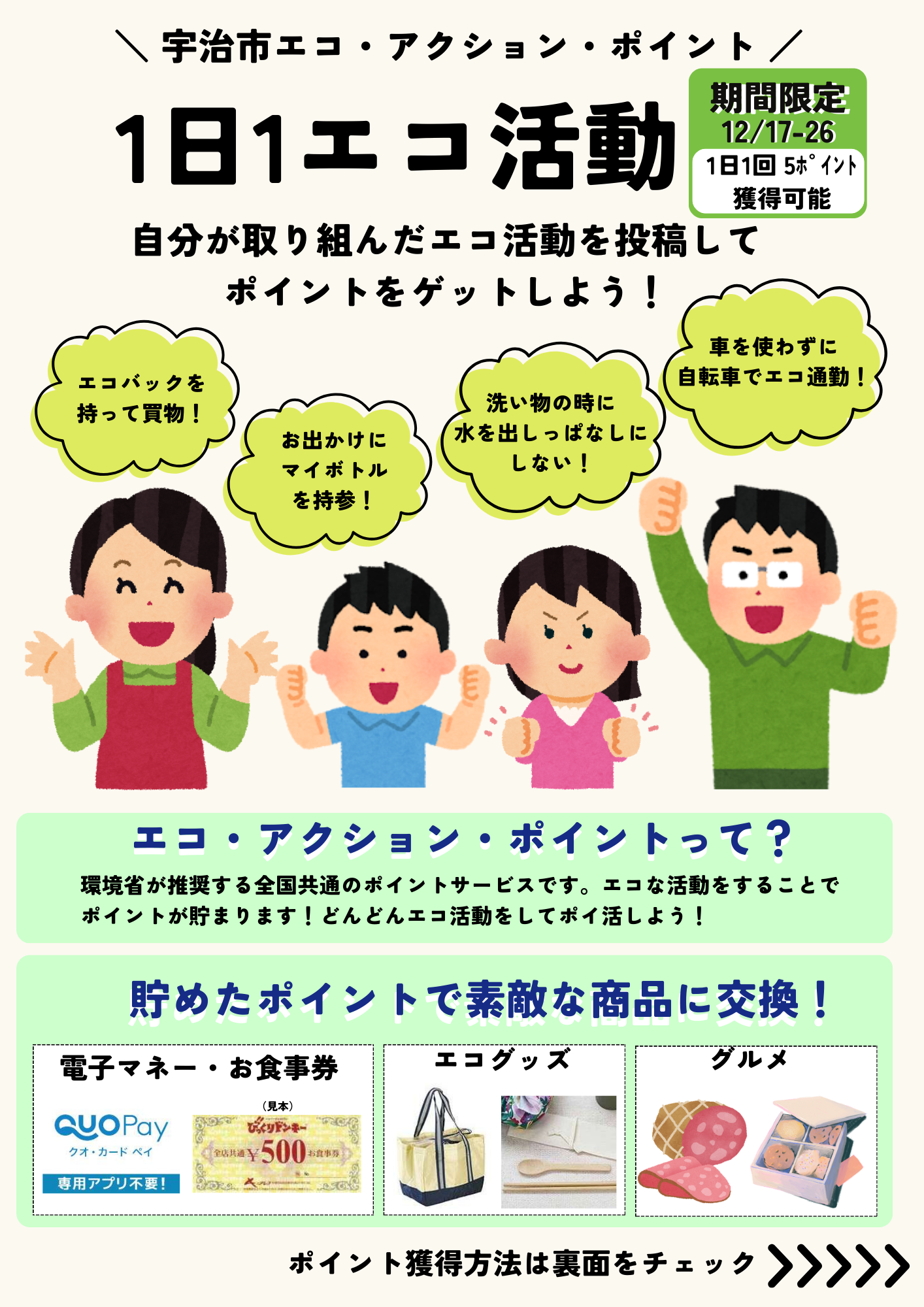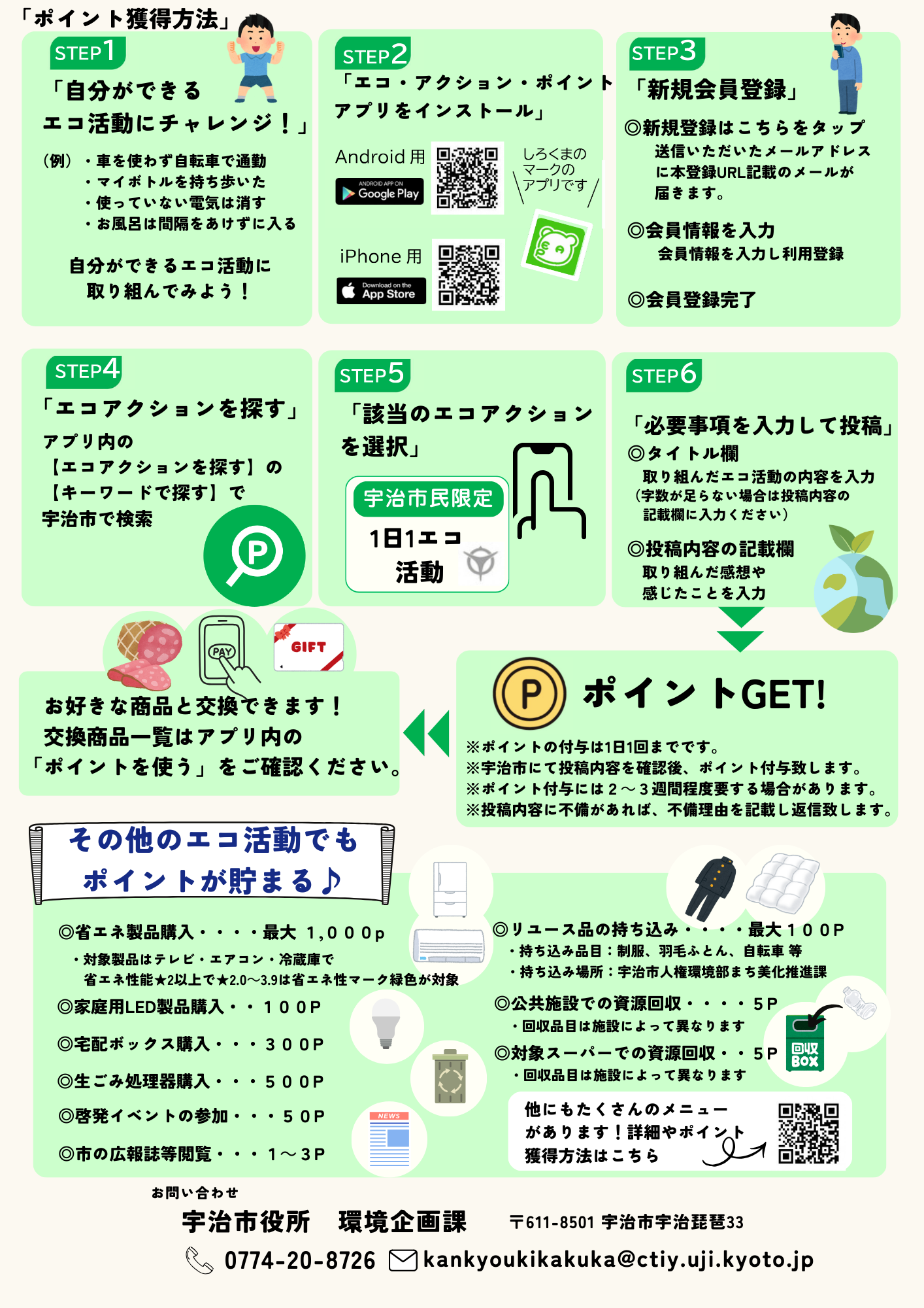 ポイントの獲得は「エコ・アクション・ポイント」アプリ のインストールと会員登録が必要です。